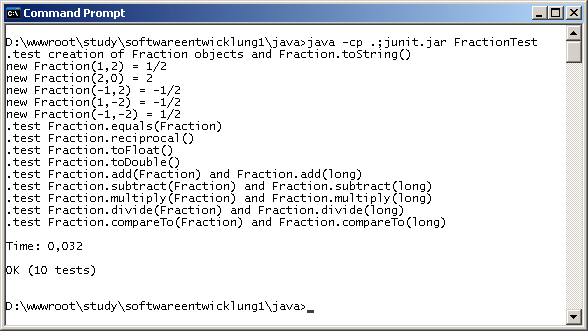 ermittelt. Die möglichen Ergebnisse von compareTo(Fraction) wurden in drei